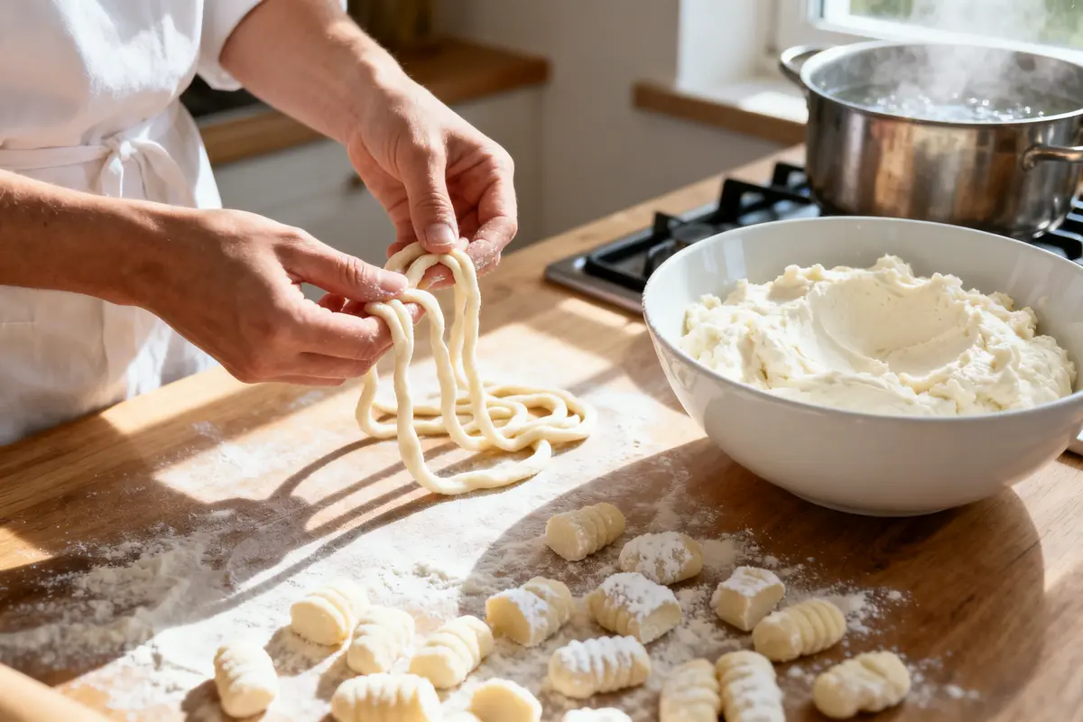 La ricotta ha una struttura già pronta. Non devi lessare patate, non devi raffreddare nulla e non serve nessun passaggio complicato. Mescoli gli ingredienti, aggiungi la farina giusta, formi i cordoncini e li tuffi in acqua bollente. Fine.